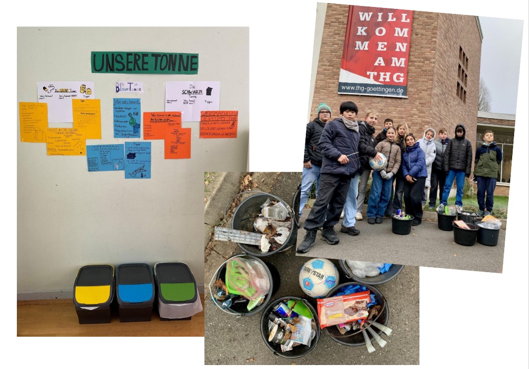 Das Lehrerteam des Jg. 7 suchte sogleich gemeinsam passende Mülleimersysteme aus, sammelte Materialien für die Vermittlung von Hintergrundwissen und führte mit ihren Klassen verschiedene Aktionen durch.