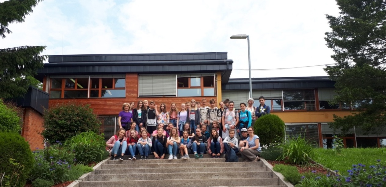 11 Schülerinnen und 6 Schüler des 7. Jahrgangs nahmen unter der Leitung von Sandra Bender und Dr. Gabriele Koch am Austausch mit unserer slowenischen Partnerschule in Gorje bei Bled teil.