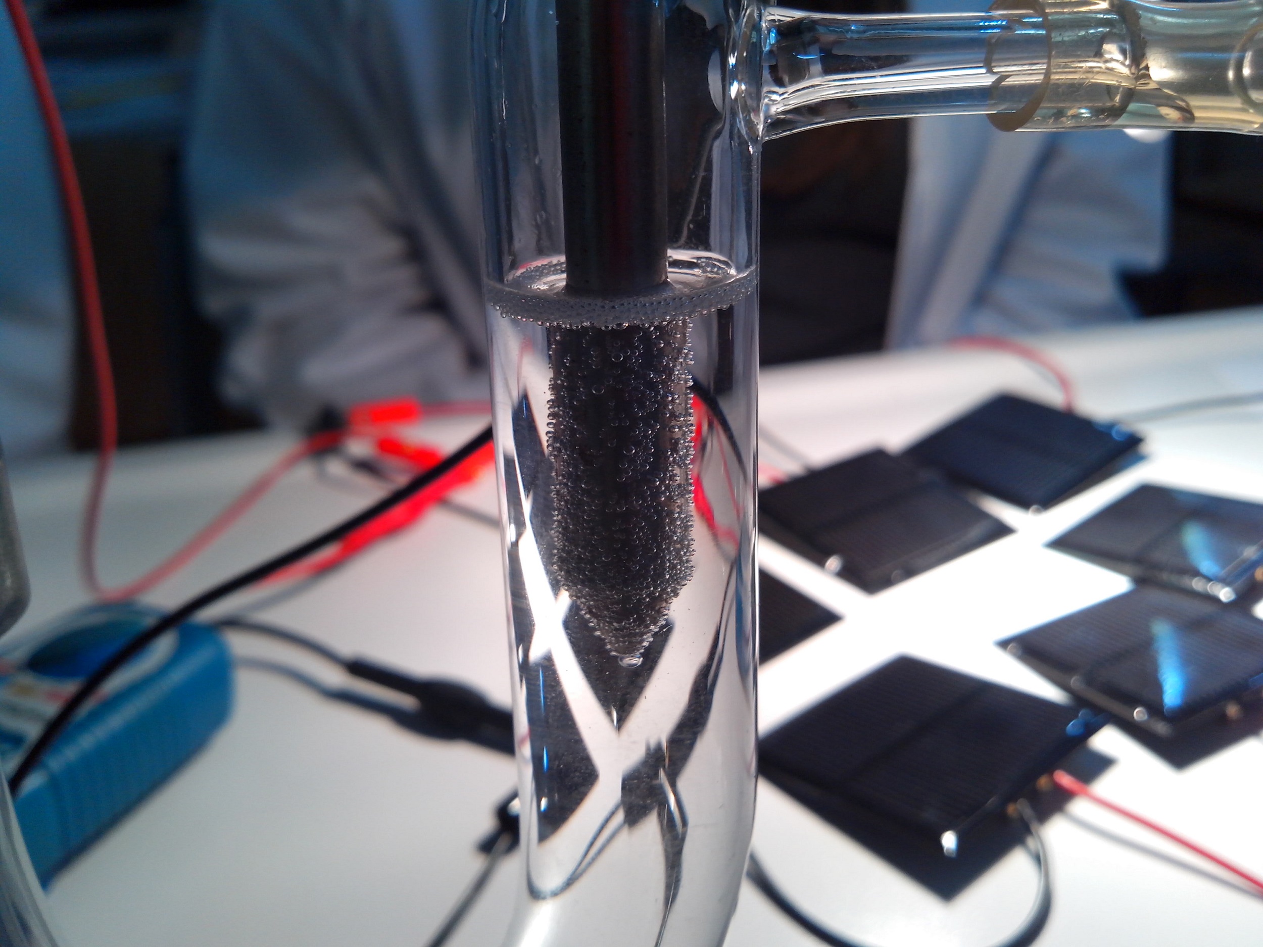 Der Projekttag war jedoch nicht nur theorielastig, sondern forderte zum Anfassen und Mitmachen auf. So haben die Schülerinnen und Schüler aus Haushaltchemikalien eine farbstoffbasierte Solarzelle selber gebaut sowie deren Funktion im Anschluss getestet.