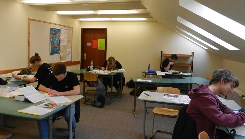 Ausgerüstet mit einem traditionellen Wörterbuch haben unsere jungen Übersetzer zeitgleich mit den anderen Teilnehmern in Europa innerhalb von zwei Stunden ihre Übersetzung zu Papier gebracht. Diese handschriftlichen Texte werden jetzt von professionellen Übersetzern in Brüssel gelesen und beurteilt.