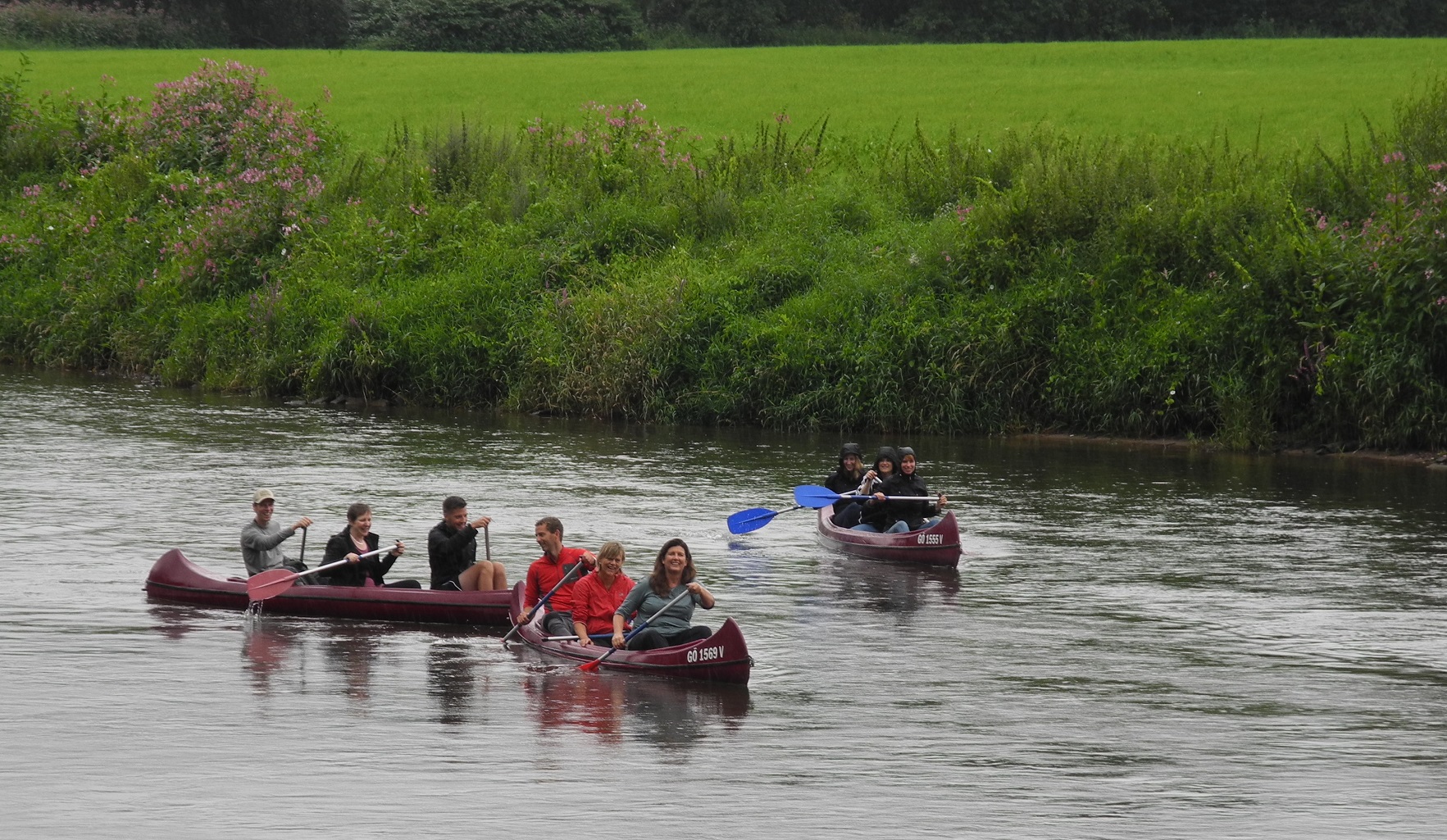 Obwohl es Petrus nicht wirklich gut mit uns meinte, sind die meisten Kolleginnen und Kollegen am Mittwoch, dem 3. August, der Einladung zu einer Paddeltour auf der Weser gefolgt – mit Vergnügen.
