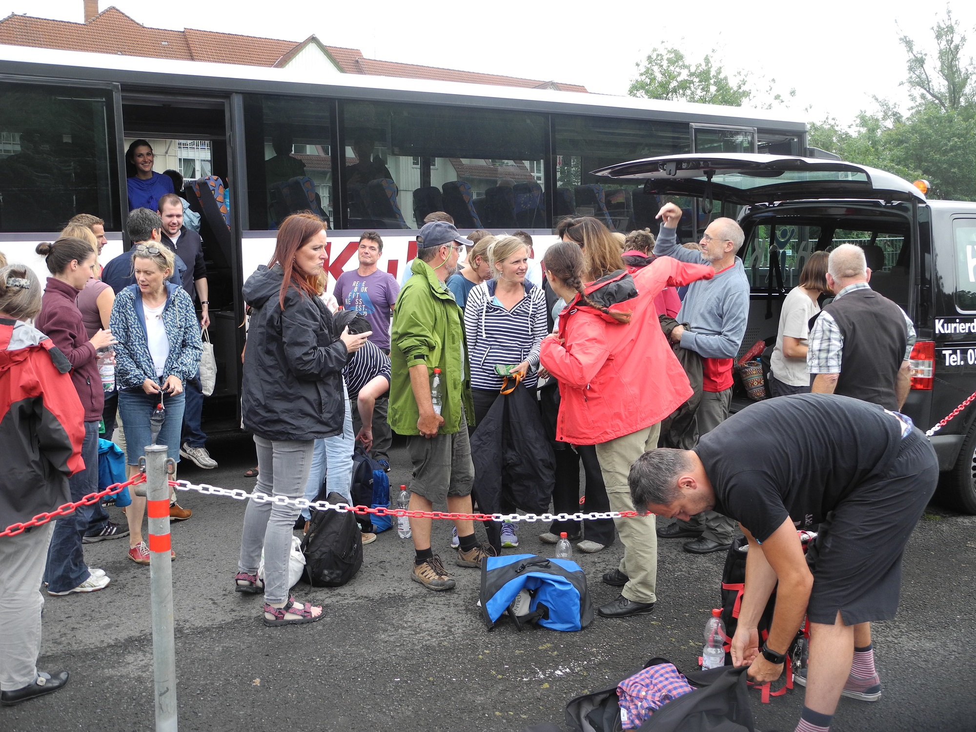 Durchnässt aber glücklich erfolgte die Landung in Hemeln, wo bereits trockene Wechselkleidung bereitlag. Vom klammen Paddeldress befreit, konnten alle sportbegeisterten Pädagogen das kühle Radler, einen Strammen Max oder den sahnebekrönten Kuchen besonders intensiv genießen. Selbst auf der Rückfahrt waren die Akkus noch nicht leer, sondern wurden weiter in Klassenfahrtlautstärke diverse Sujets durchdiskutiert.