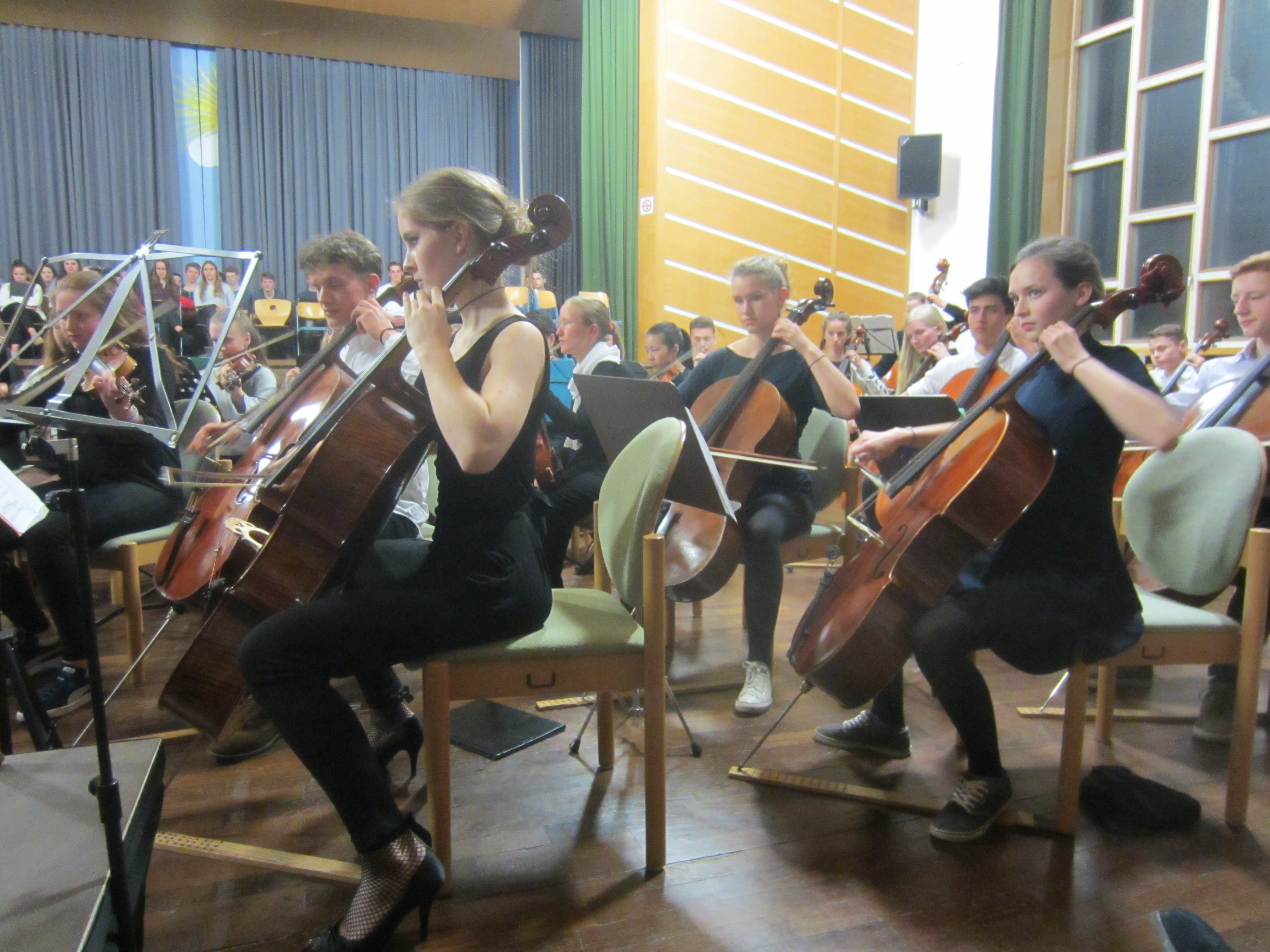 Das Vororchester der Klassen fünf bis acht eröffnete seinen Part des Konzerts mit kräftigen Paukenschlägen. Die Celli riefen eine düstere Atmosphäre hervor, welche mit den lieblichen Melodien der Geigen eine perfekte Mischung ergab.