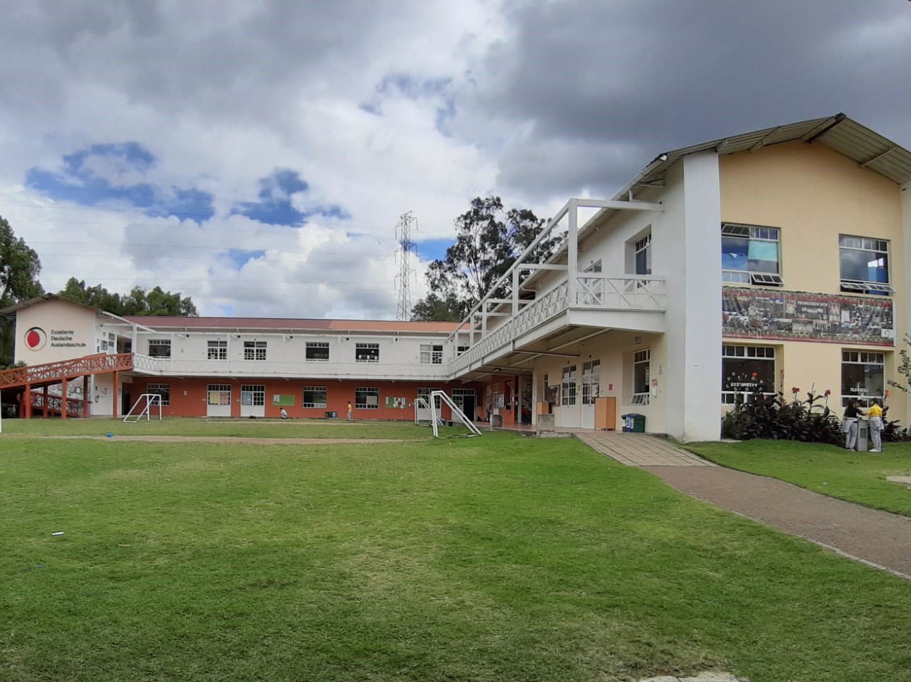 Das Colegio Alemán in Cuenca ist auf verschiedene Gebäude auf einem abgeriegelten Gelände aufgeteilt. Da die Situation in Ecuador nicht so sicher wie in Deutschland ist, kommt niemand mit dem Fahrrad oder zu Fuß – die meisten Kinder kommen mit dem Buscetta (ein kleiner Bus), der sie morgens direkt vor deiner Haustür abholt, oder werden von ihren Eltern mit dem Auto gefahren. Das Schulgelände ist bewacht und es wird genau kontrolliert, wer raus und rein geht. Auf dem Schulgelände gibt es Sportanlagen, eine offene Turnhalle und eine Cafetería. Der Unterricht läuft nicht so wie bei uns ab, er ist sehr viel lockerer und offener gestaltet. Alle Schüler*innen bewegen sich ständig, und insgesamt ist alles lauter und unruhiger. Am ersten Tag hat uns Frau Peña, die ecuadorianische Austauschlehrerin, empfangen und uns alle Regeln erklärt.