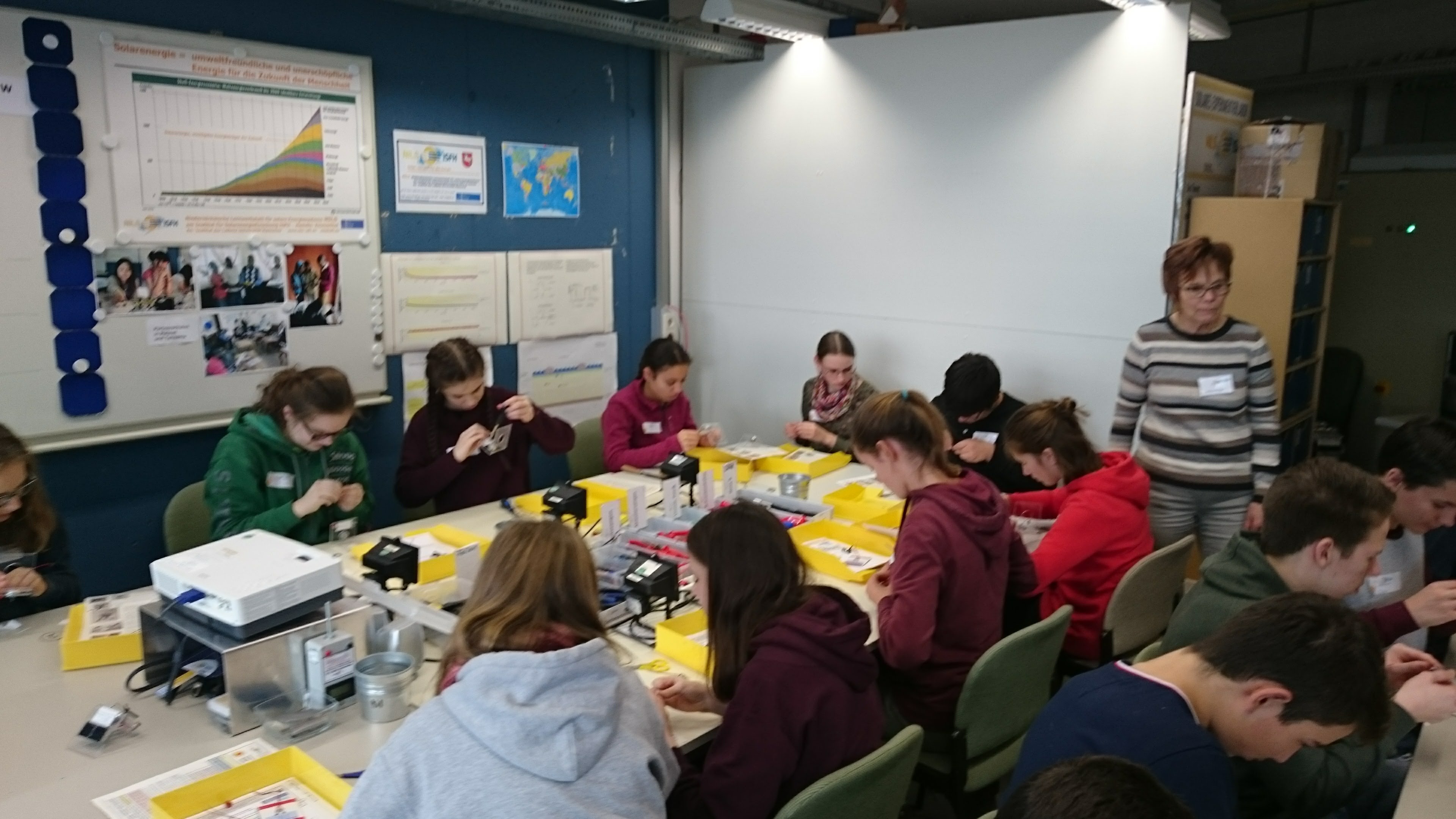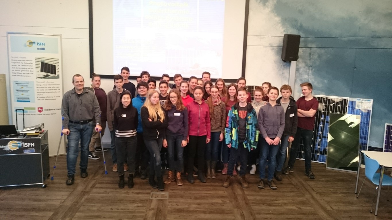 Am Mittwoch, den 13.12.2017, ging es für die Klasse 9MN nach Hameln zum Institut für Solarenergieforschung, um an einem Workshop zum Thema "Photovoltaik-System" teilzunehmen. Während des Workshops haben wir allgemein den Aufbau und Funktionsweise die Solarzelle und Wissenswertes über die Solarenergieforschung kennengelernt. Außerdem konnten wir Labore und Produktionsmaschinen anschauen und das Solarmodul mit dem aktuell besten Wirkungsgrad bestaunen. Das wichtigste was wir gelernt haben ist, dass Solarenergie in der Zukunft die wichtigste Energiequelle sein wird. Außerdem hat jeder ein Solarmodul gebaut, mit denen wir dann auch experimentieren konnten.