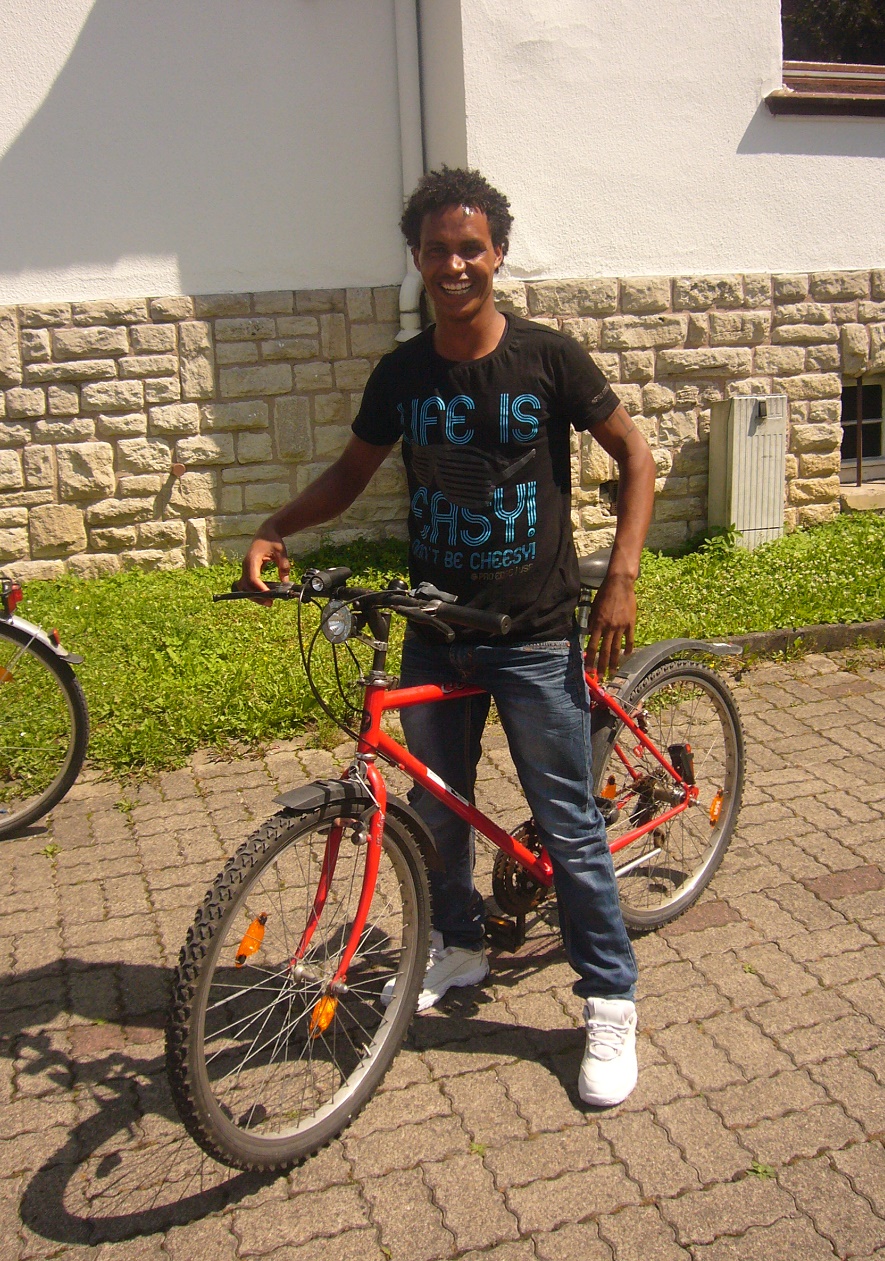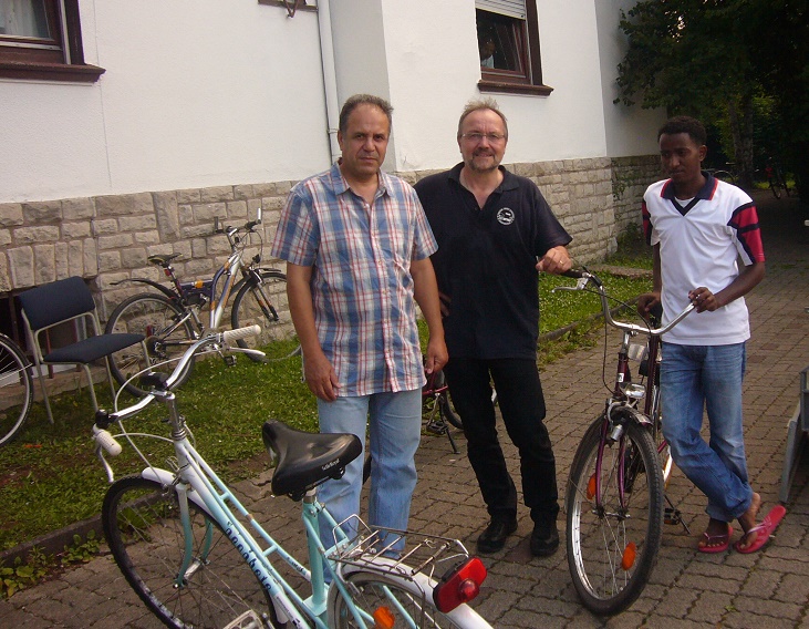 Die acht Drahtesel stammten aus einer Fahrradspende des Hausmeisters einer Wohnanlage für Studenten und wurden von der Polizei vorher auf Diebesgutverdacht überprüft. Die Flüchtlinge strahlten mit den Spendern um die Wette und unternahmen auch gleich erste Fahrversuche. Unterstützt wurde die Aktion von Velo Voss, Real und dem Zweirad Team, denen an dieser Stelle herzlich gedankt werden soll.