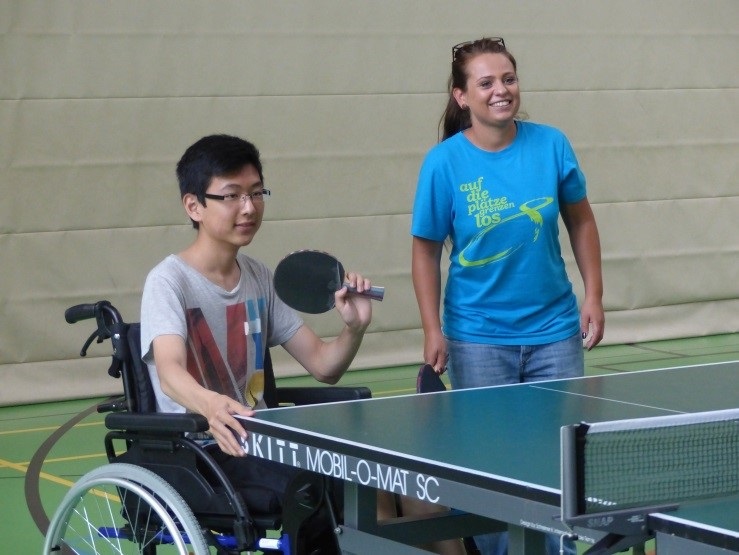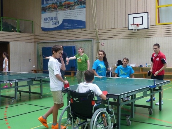 Als Trainer mit dabei waren Dennis und Fabian, junge, engagierte Tischtennisspieler vom SCW Göttingen sowie Mathias Kleinert, der als einer der ersten gehandicapten Mitglieder im SCW bereits seit 20 Jahren  mit dem Rollstuhl am Tischtennistraining in Göttingen teilnimmt. Von ihnen konnten die 18 Schüler bereits an den ersten Tagen wesentliche Grundlagen im Tischtennis erlernen.