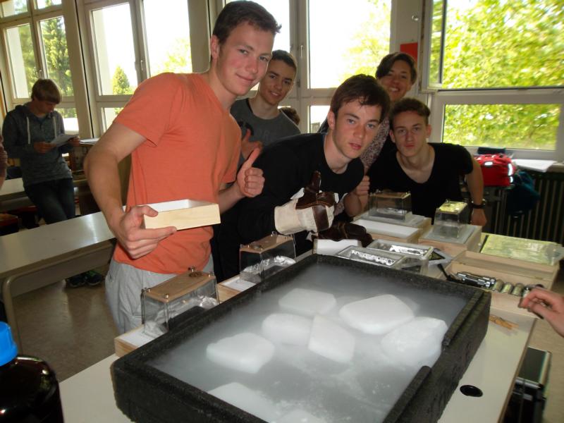 Der Physik-EA-Kurs hatte von Besuch von der ehemaligen Schülerin Maria Mironova und ihrem Physikstudenten-Team. Gemeinsam bauten sie mit einfachen Mitteln wie einem Aquariumglas und Trockeneis kleine Nebelkammern auf. Daran konnten sie dann die Funktionsweise der Nebelkammer besprechen und Teilchenspuren kosmischer Teilchen beobachten.