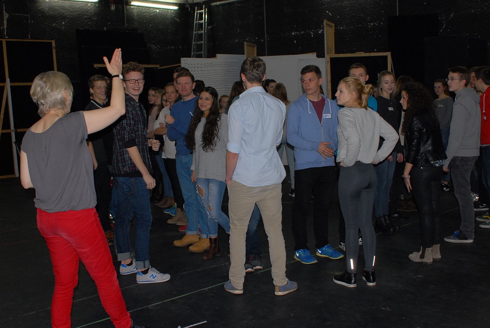 Zahlreiche Akteure des DT hatten sich bereitwillig eingefunden, um ihre Passion fürs Theater an die Jugendlichen weiterzugeben: so die Schauspielerinnen Angelika Fornell, Andrea Strube, Vanessa Czapla und Rahel Weiss, die Tänzerin Felicitas Madl sowie die männlichen Darsteller Philip Hagmann, Gerd Zinck und Frederik Schmid. Initiiert wurde die Veranstaltung, die sich an Schülerinnen und Schüler aus dem Raum Göttingen wandte, von der neuen Theaterpädagogin des DT, Gabi Michel-Frei und der neuen Dramaturgin für das Kinder- und Jugendtheater, Sonja Bachmann.