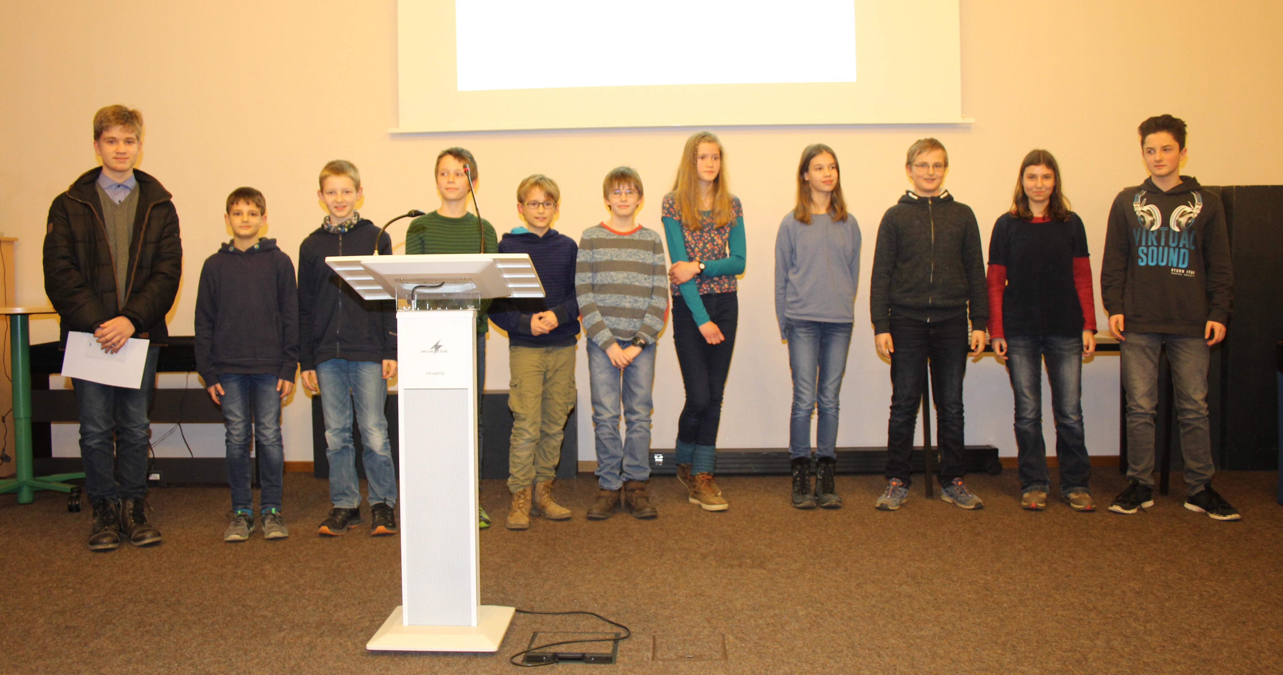 Am Donnerstag, den 11.1.2018, war es endlich soweit. Die erfolgreichsten Teilnehmer der 2. Runde der Mathematik-Olympiade versammelten sich in der Aula des Minimax, der Außenstelle des MPG, um an einer gemeinsamen Siegerehrung teilzunehmen.