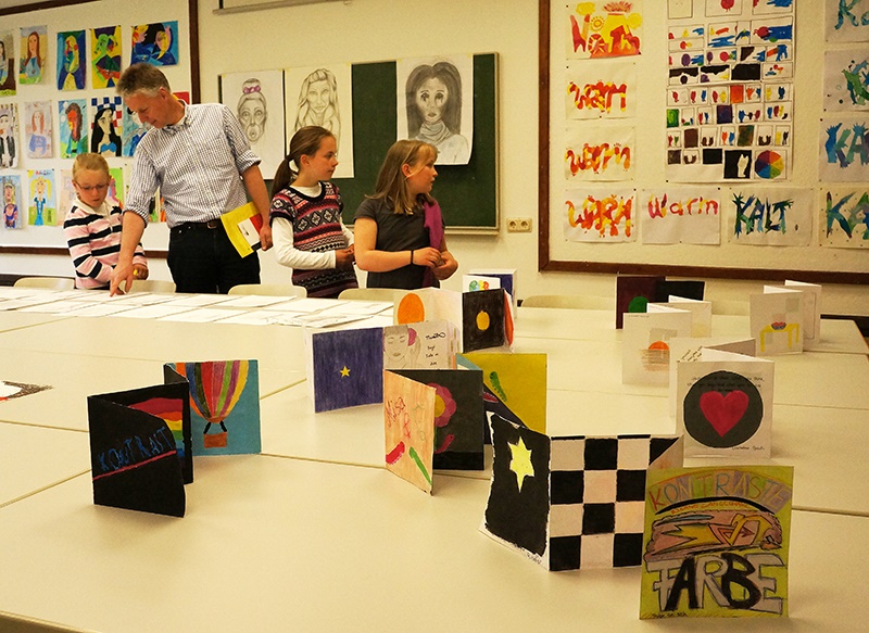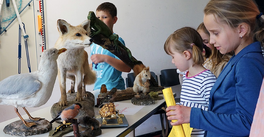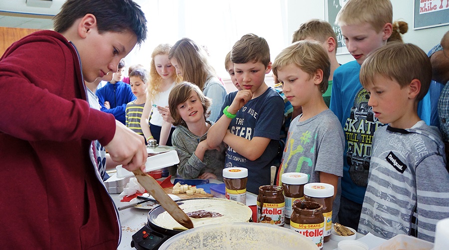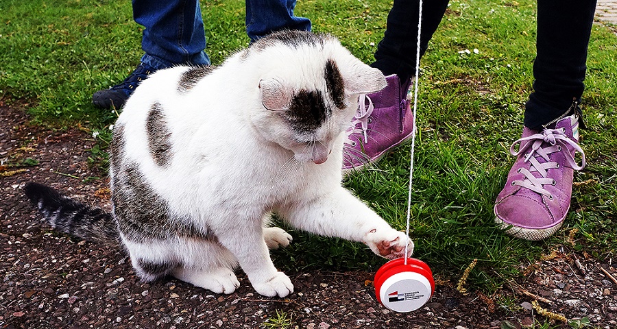 In diesem Jahr machte unsere Schule den Anfang im Reigen der Vorstellungstage aller Göttinger Gymnasien und zum Glück war uns auch 2015 der Wettergott wohlgesonnen. Vor dem Neubau blühten die jungen Bäumchen, der „Schulginko“ zeigte erstes Grün und im Schulgarten präsentierten sich die Beete frisch geharkt. Das große mit vielen Spiel-, Sport- und Entspannungsplätzen ausgestatte Außengelände unsere Schule konnte auch in diesem Jahr wieder punkten. Natürlich hatten sich im Inneren alle Mitglieder der Schulgemeinde ebenfalls mächtig ins Zeug gelegt, um den künftigen Fünftklässlern das THG mit seinen vielfältigen Angeboten zu präsentieren. Bereits im Eingangsbereich konnte man sich an verschiedenen Infopoints beraten lassen oder sich mit qualifizierten Guides gleich auf Entdeckungstour begeben. Und zu entdecken gab es vieles: Experimente in den Räumen der Naturwissenschaften, Kulinarisches und Wissenswertes bei den Sprachen oder Neuestes zum Einsatz von Computern und Internet im Unterricht. Begleitet wurde dieser Tag musikalisch natürlich wieder von der Schulband und das Fach Darstellendes Spiel stellte Ausschnitte aktueller Produktionen vor. Wie in jedem Jahr standen auch der Förderverein und die Mitglieder der Schulleitung zu Gesprächen bereit und konnten sich Interessierte über die Hausaufgabenbetreuung, die Schüleraustausche oder das Diakonische Praktikum informieren. Besonders eifrig aber versuchten die Grundschüler, die acht Fragen der kleinen Schulrallye zu beantworten, um die Schule ein bisschen besser kennenzulernen oder vielleicht ganz einfach, um sich den kleinen Preis zu verdienen: ein Jojo mit THG-Logo. Dass auch unsere Schulkatze engagiert dabei war, sieht man auf dem Foto …