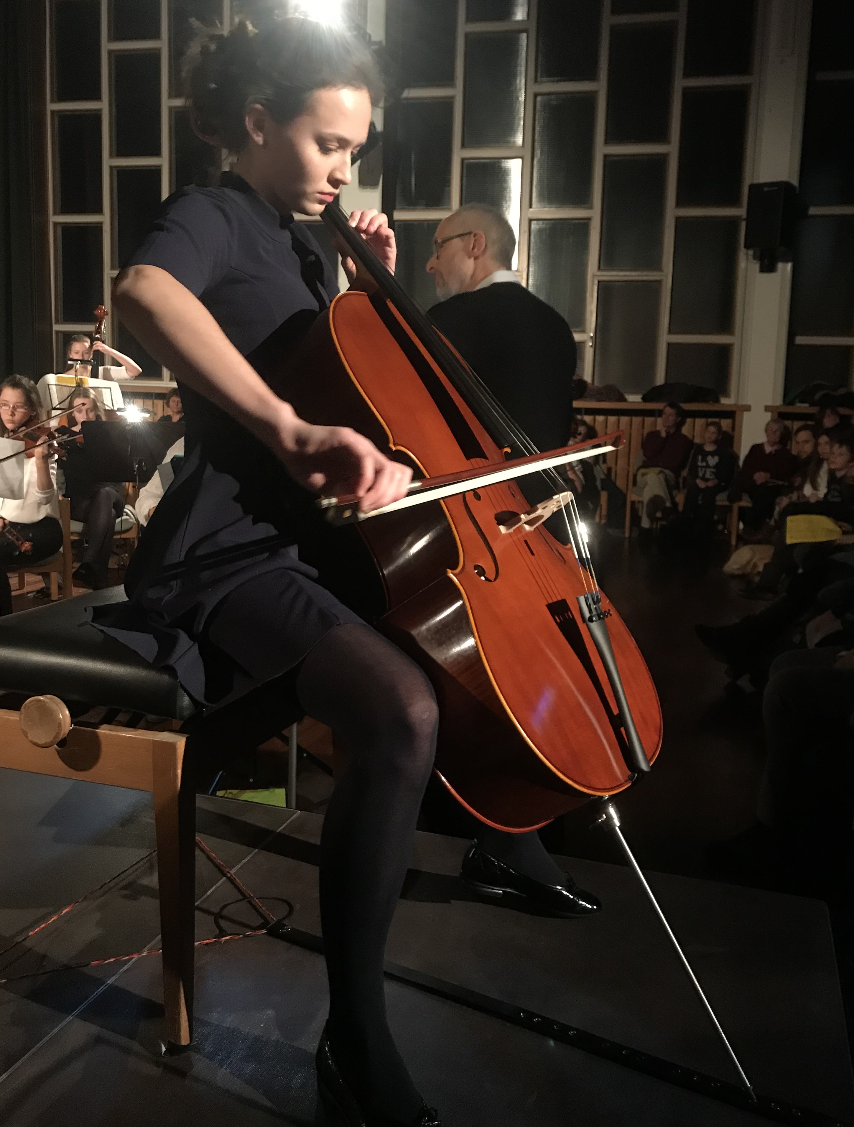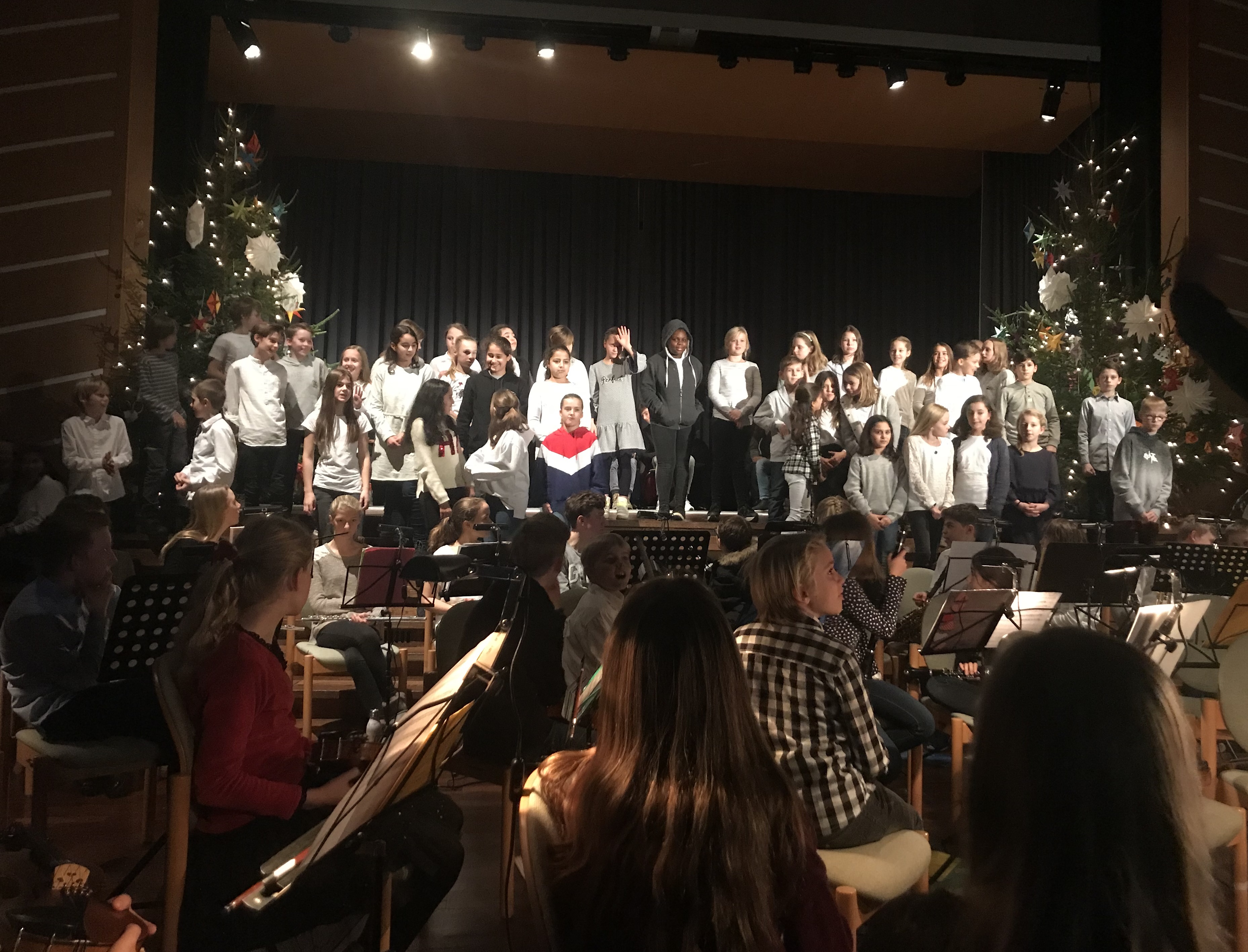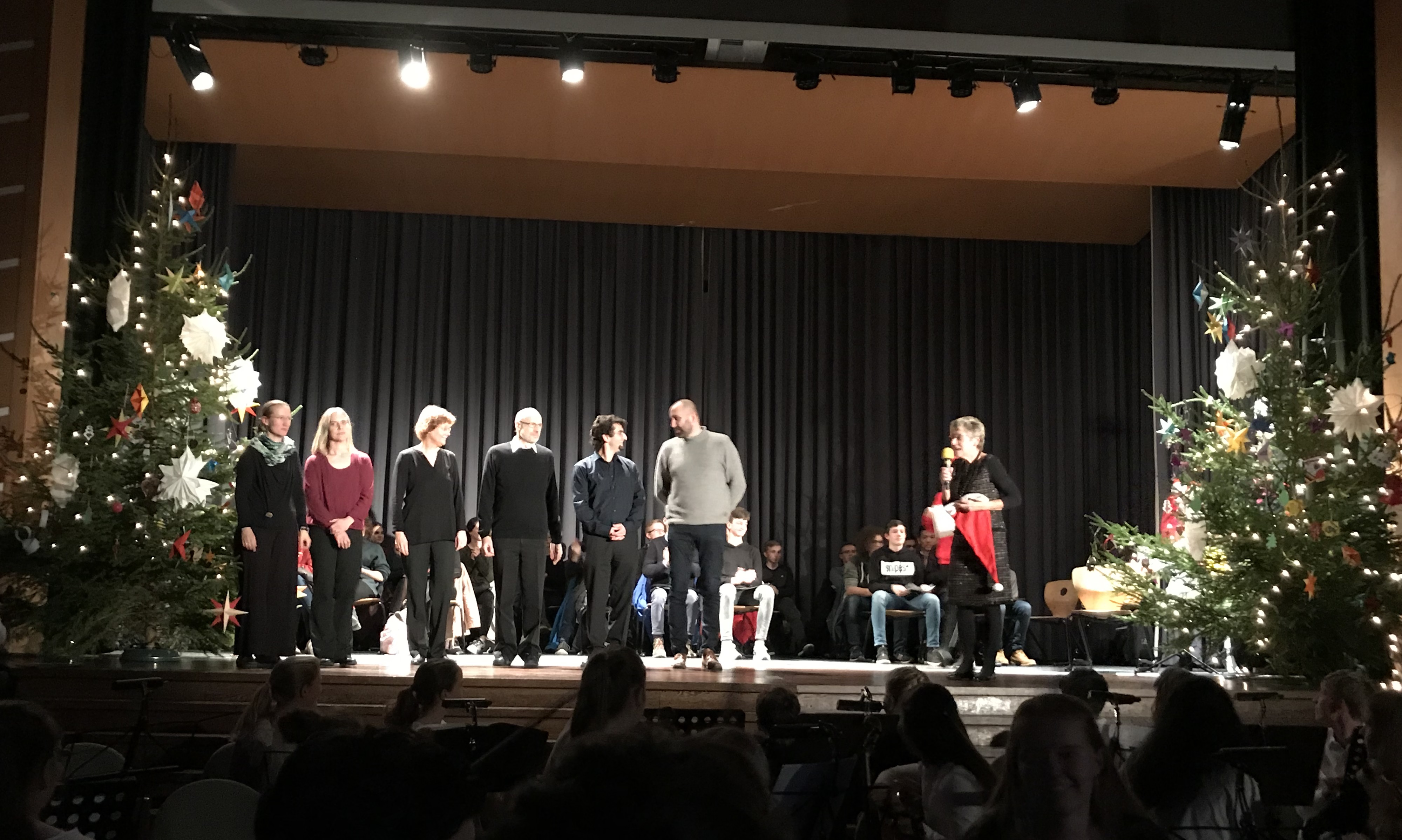 Mein persönliches Highlight des Abends waren die beiden Stücke des großen Orchesters mit den jeweiligen Soli von Hélène Chaubard-Mackinnon auf der Violine und Lotte Kollmar am Cello, die auch das Publikum sehr begeisterten. Während des Konzertes verbreitete sich eine angenehme vorweihnachtliche Stimmung und nach dem Auftritt der Jazz-Band würdigte Frau Koller die tolle Vorbereitung durch die Musiklehrerinnen und –Lehrer und dankte allen Mitwirkenden mit den wahrscheinlich allerersten Nikoläusen der Adventszeit.